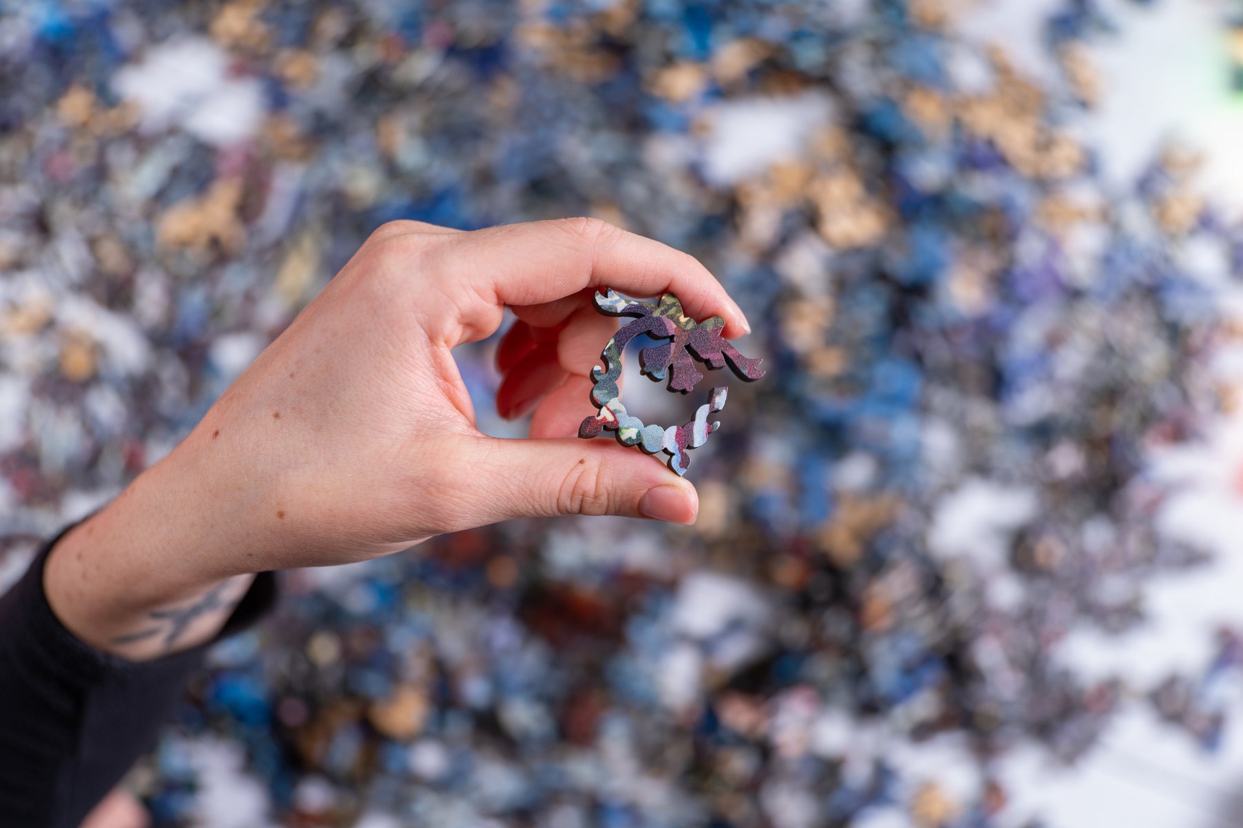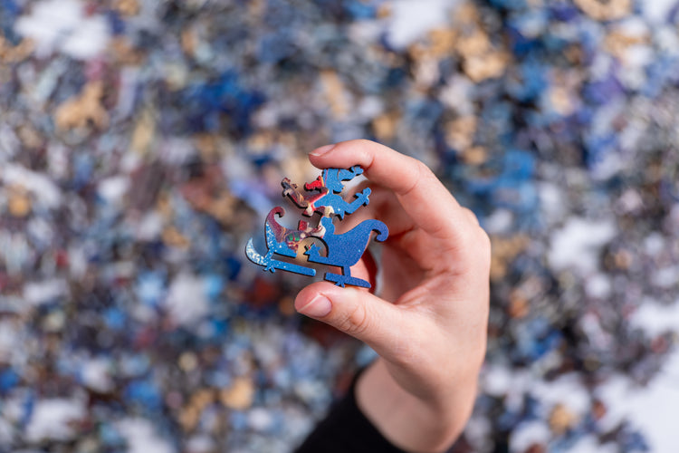 Whimsical pieces that tell a story: Our puzzles are jam packed with interactive whimsy puzzle pieces. Whimsies are special puzzle pieces with recognizable shapes that narrate the story of the artwork you purchase, from depictions of people in love, animals in motion, or even to worldwide landmarks. If you flip the puzzle over you’ll see your whimsy pieces as a whole tell the story of the art of the puzzle.